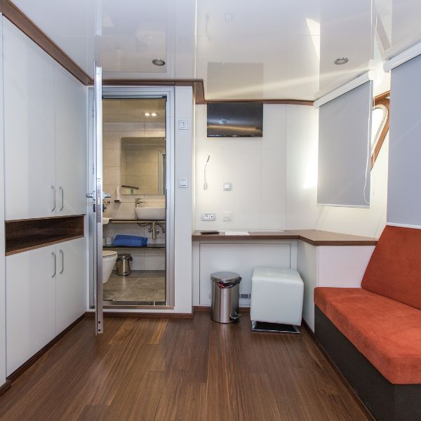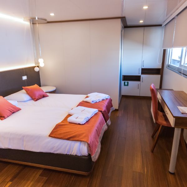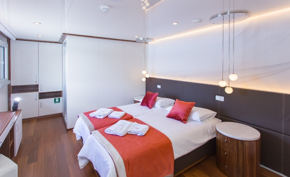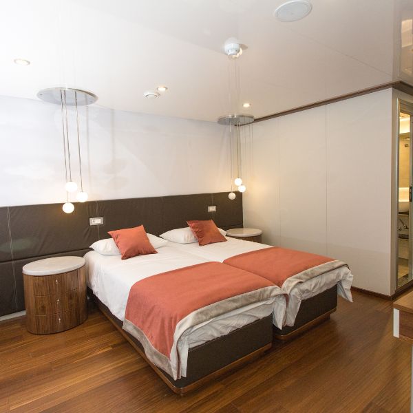 The MV Avangard is a modern deluxe vessel, offering a luxurious cruising experience along the Croatian coast. Launched in 2017, this state-of-the-art ship is equipped with the latest technology and amenities to ensure maximum comfort. With a length of 50 meters and a width of 8.8 meters, Avangard features 18 spacious cabins, each equipped with modern comforts like air conditioning, LCD TVs, and vanity sets. Cabins are serviced daily, providing a high standard of cleanliness and comfort throughout the voyage. The ship's amenities include a large sundeck of 220 m² with a Jacuzzi, perfect for relaxing under the sun. The spacious salon area, with a dining area, bar, and lounge seating, offers an inviting space for guests to unwind and socialize. For easy access to the sea, the ship is equipped with a swimming platform, and leisure activities like snorkelling and swimming are available.