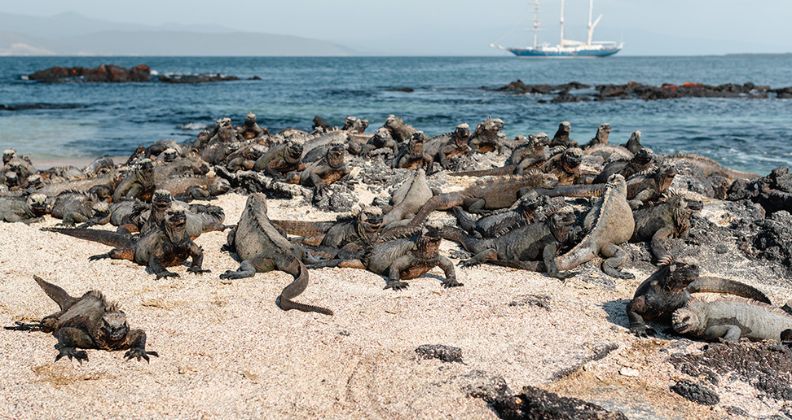 פרננדינה – נקודת אספינוזה / איזבלה – נקודת ויסנטה רוקה בקרו בנקודת אספינוזה באי פרננדינה, שם איגואנות ימיות משתזפות על לבה שחורה ושנורקלרים יכולים לצפות בהן ניזונות מתחת למים. המשיכו לנקודת ויסנטה רוקה, מפרץ עשיר בחומרי מזינים הידוע בציפורי ים, דולפינים, לווייתנים ושנורקלינג יוצא דופן.