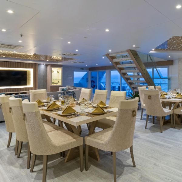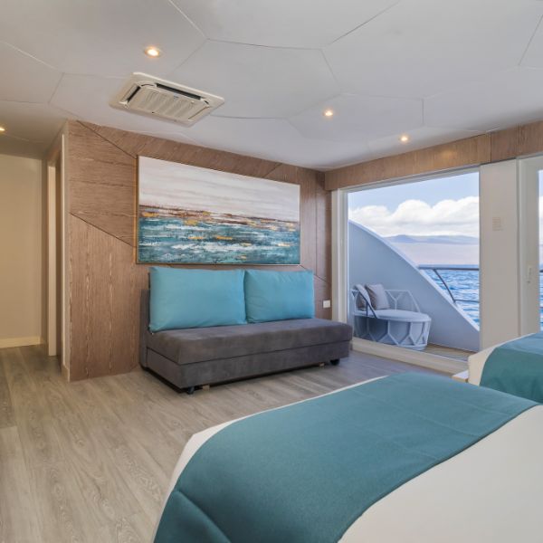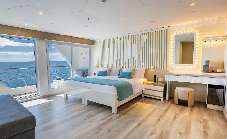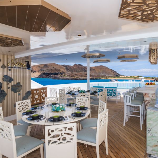 Experience the Galapagos in refined comfort aboard the Elite, a luxury catamaran designed to pair elegant design with immersive exploration. Its sleek twin-hulled layout offers expansive observation decks, panoramic balconies, and light-filled interiors that bring the islands’ dramatic landscapes into view. Suites feature private balconies and floor-to-ceiling windows, while the open-air sky deck with whirlpool and cocktail bar provides a relaxed setting between daily excursions. Thoughtfully prepared cuisine and attentive service complete an intimate onboard experience that enhances every landing, snorkel, and wildlife encounter in the archipelago.