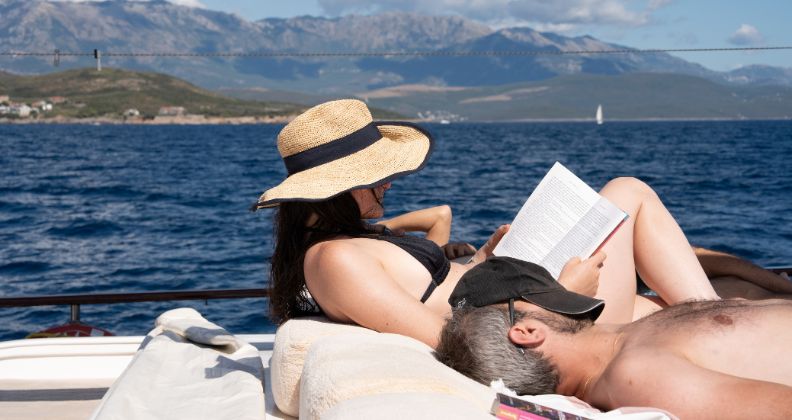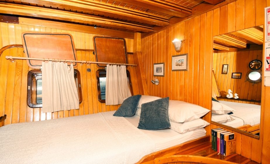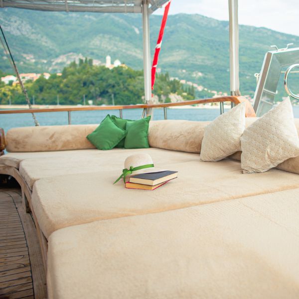 The Montenegro cruise is hosted aboard two beautifully handcrafted gulets, each a masterpiece of Turkish woodwork blending classical craftsmanship with modern building techniques. Kaptan Sevket and Sadri Usta 1 both feature spacious, elegantly appointed cabins with private shower and toilet, air conditioning, and all the amenities for a comfortable stay, accommodating 12–16 guests. Each yacht offers inviting dining areas on the aft deck, as well as plush outdoor lounges and front-deck sunbathing areas where you can relax with a drink and watch the sunset. Onboard, a dedicated crew including captain, chef, steward, and deckhand attend to every detail.